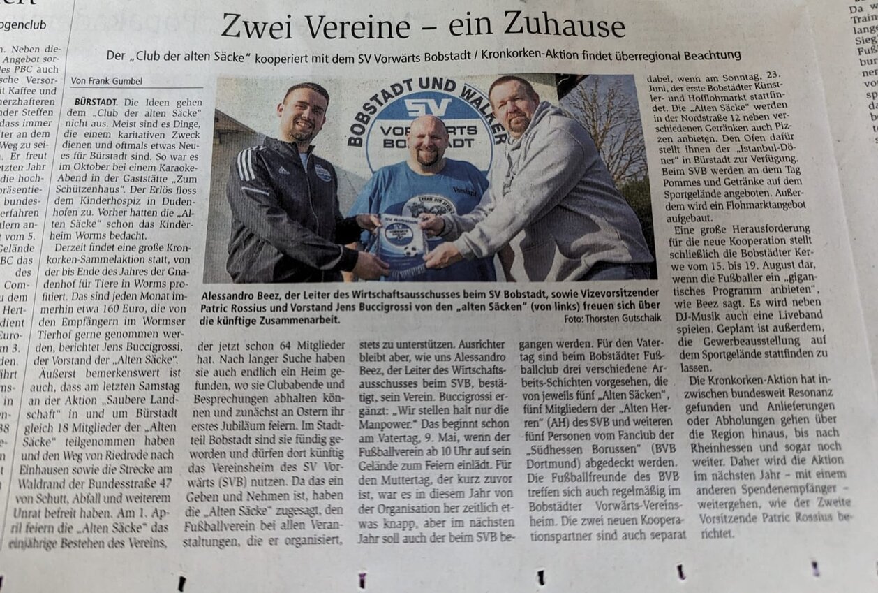 Zeitungsbericht über die Zusammenarbeit mit dem SV Vorwärts Bobstadt.